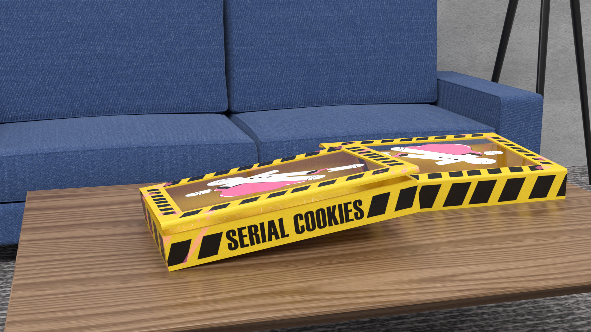 "Serial Cookies" successfully marries a playful concept with design execution, resulting in a distinctive brand that stands out on the shelf.